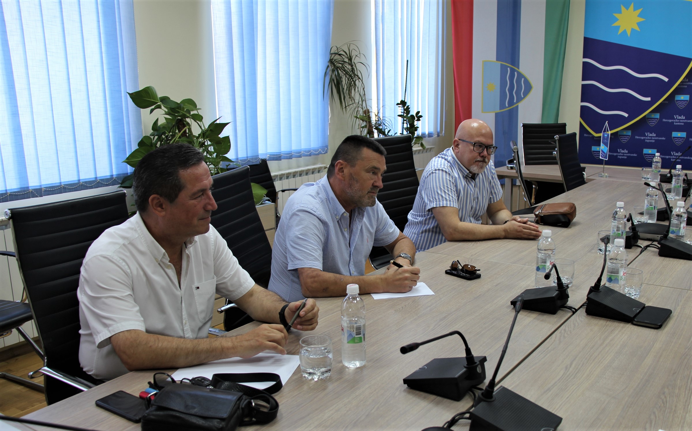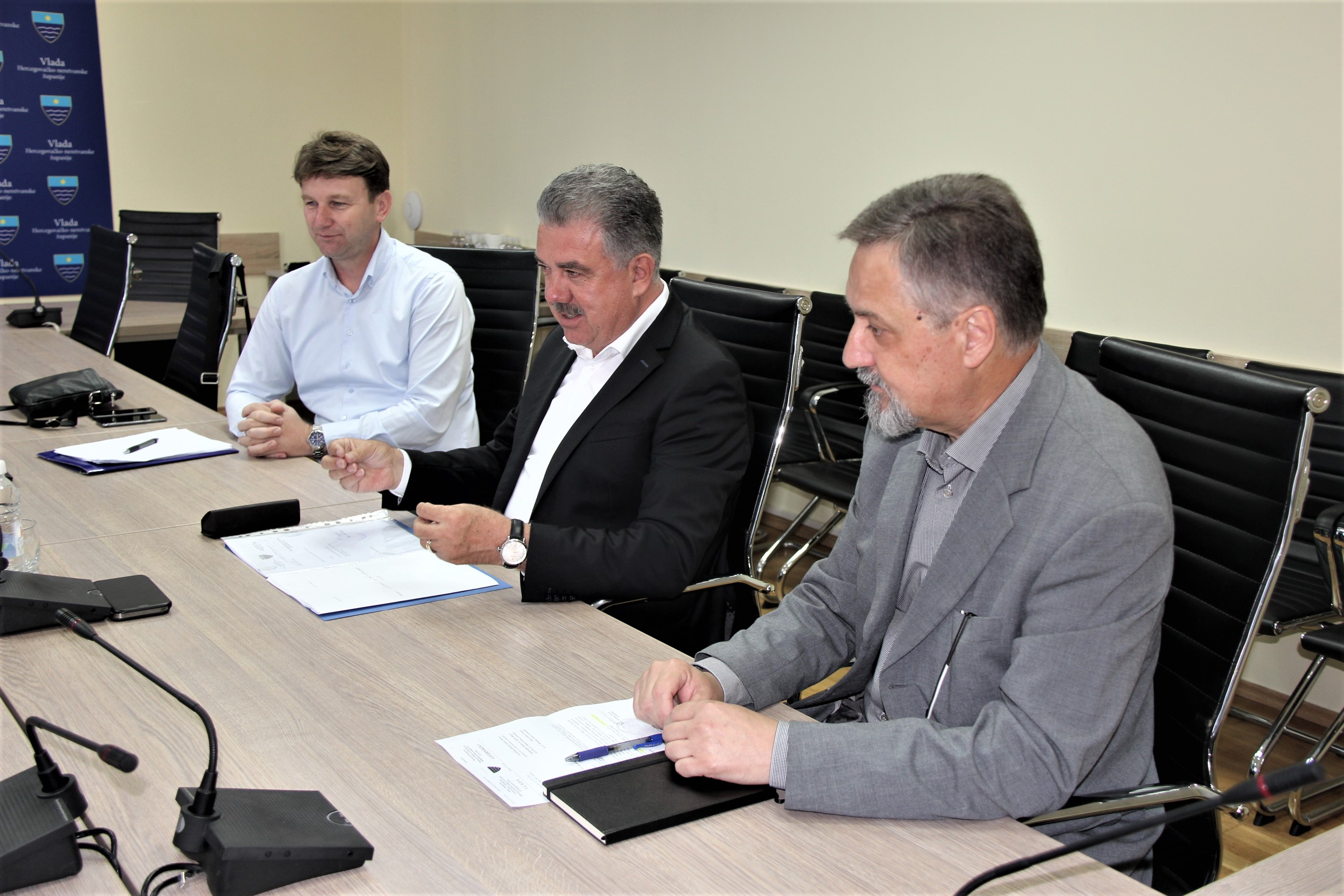Dr. sc. Nevenko Herceg, premijer Hercegovačko-neretvanskog kantona, dr. sc. Goran Opsenica, ministar zdravstva, rada i socijalne zaštite i Adnan Faladžić, ministar finansija danas su u zgradi Vlade HNK održali sastanak sa direktorima tri bolničke ustanove iz HNK: dr. Antom Kvesićem, direktorom SKB Mostar, dr. Zlatkom Guzinom, direktorom Kantonalne bolnice „Dr. Safet Mujić“ i Dženanom Leparom, direktorom Opće bolnice Konjic.