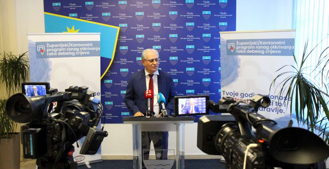 - Karcinom debelog crijeva jedan je od najčešćih oblika karcinoma, ali ako se otkrije na vrijeme, u više od 90 % slučajeva moguće ga je uspješno izliječiti – poručeno je na današnjoj konferenciji za novinare u zgradi Vlade HNK-a, sazvanoj u cilju predstavljanja Preventivnog programa ranog otkrivanja karcinoma debelog crijeva. Istaknuto je da je cilj povećanje svijesti, rane dijagnostike i smanjenja smrtnosti od te opasne bolesti.