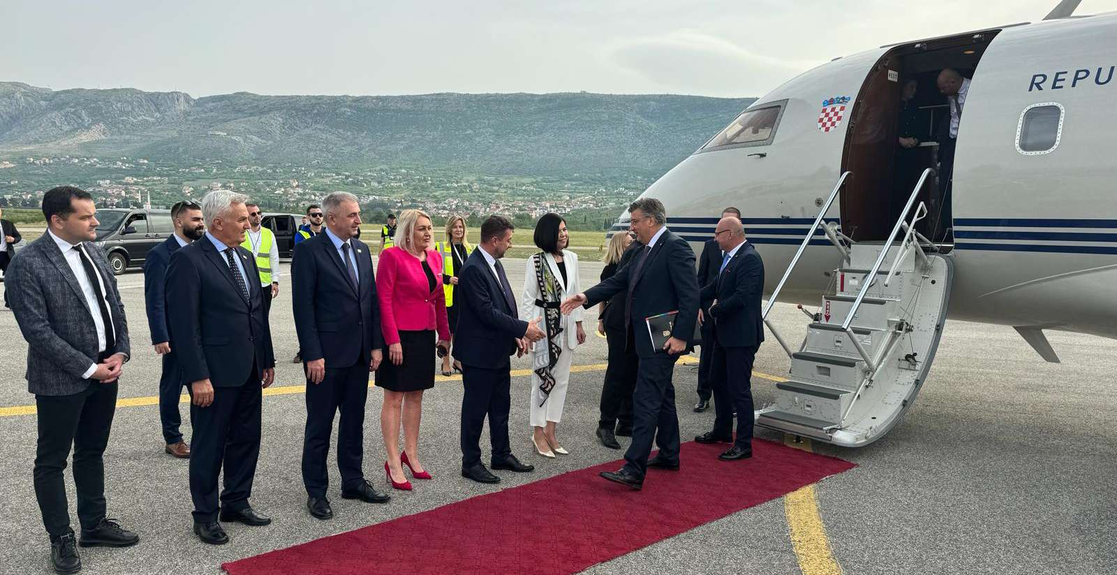 Premijerka Hercegovačko-neretvanskog kantona Marija Buhač jutros je na mostarskom Aerodromu dočekala premijera Republike Hrvatske Andreja Plenkovića koji je u Mostar stigao da bi, kao lider ovogodišnje zemlje partnera, svečano otvorio 25. Međunarodni sajam privrede ''Mostar 2024.'' Premijerka Buhač jučer je učestvovala i u dočeku srbijanskog predsjednika Aleksandra Vučića koji je, slijetanjem prvog aviona ''AirSerbia'' na Aerodrom Mostar, službeno označio otvaranje direktnih letova između Mostara i Beograda (Republika Srbija). Vlada HNK-a strateški i pokroviteljski godinama stoji kako uz mostarski sajam kao privrednu manifestaciju od regionalnog značaja, tako i uz Aerodrom Mostar čiji razvoj poima kao strateški cilj u ukupnom razvoju saobraćajne infrastrukture i HNK-a kao globalno prepoznatljive turističke destinacije.
