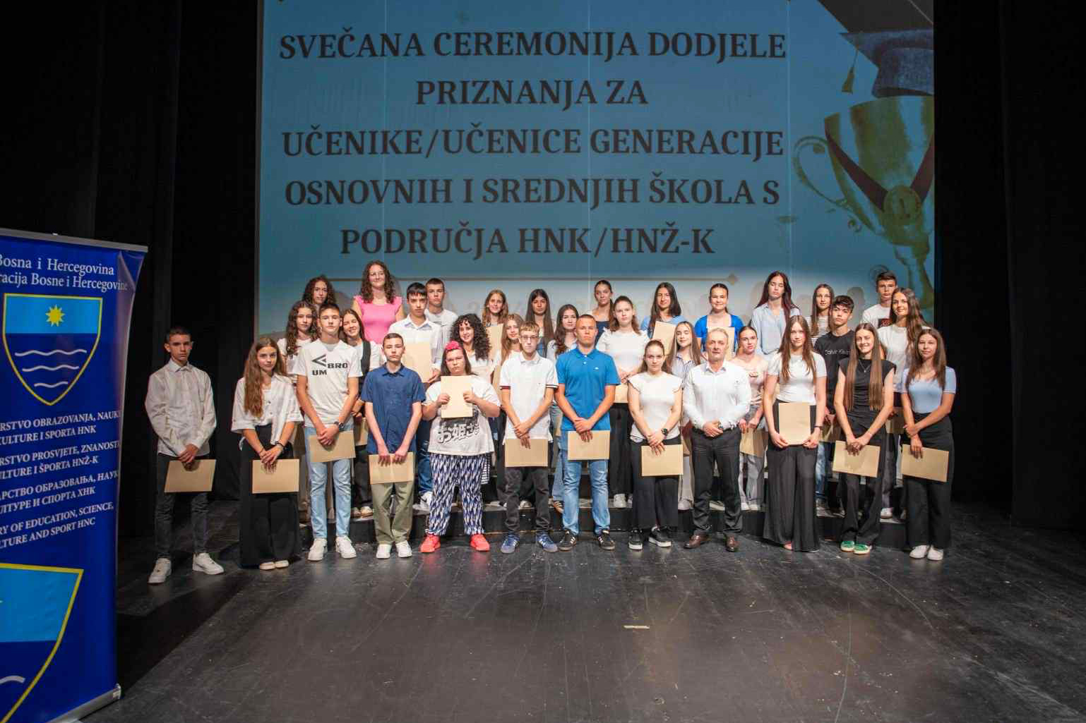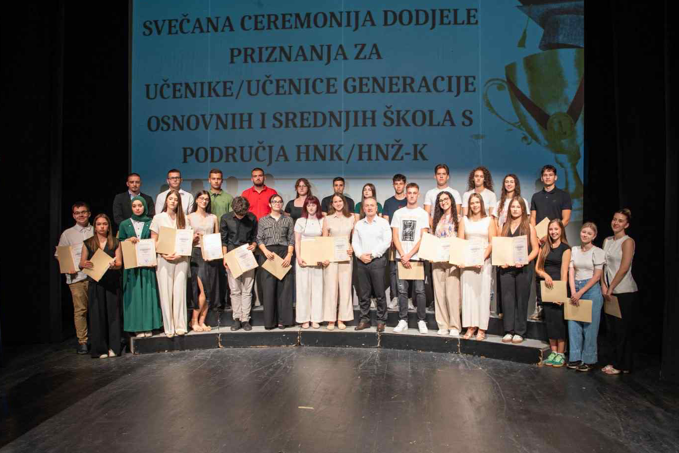Ministar obrazovanja, nauke, kulture i sporta Hercegovačko-neretvanskog kantona Adnan Velagić uručio je, u okviru svečanosti u Narodnom pozorištu Mostar, priznanja učenicima generacije osnovnih i srednjih škola HNŽ-a za školsku 2024./2025. godinu. Čestitavši im ostvarene rezultate i uspjeh tokom školovanja, akcentovao je da se ovom prilikom slavi predanost i odličnost.