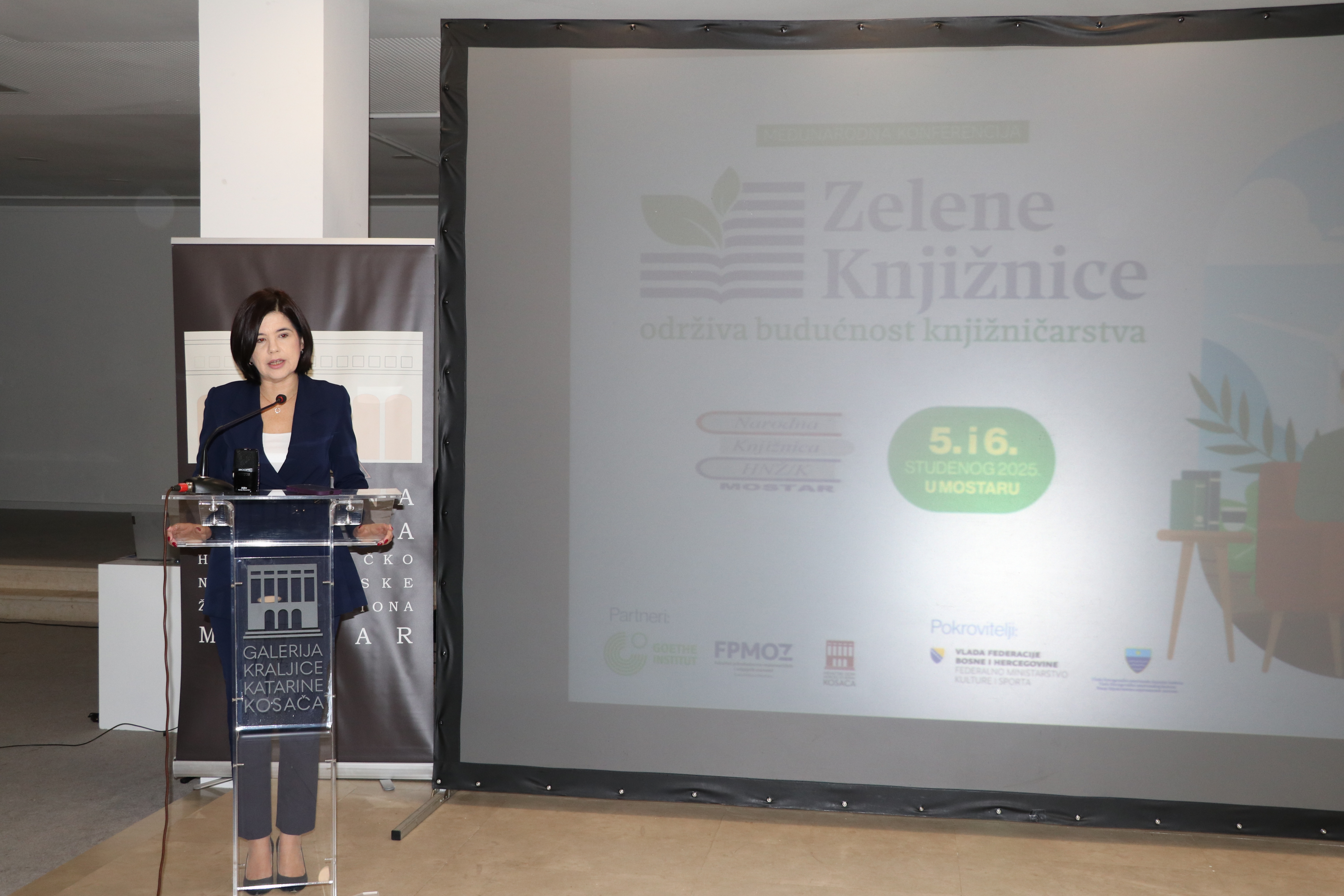 Prva međunarodna konferencija ''Zelene knjižnice - održiva budućnost knjižničarstva'', otpočela je danas s radom u Galeriji kraljice Katarine, Hrvatski dom herceg Stjepan Kosača, a pozdravnim ju je izlaganjem službeno otvorila predsjednica Vlade Hercegovačko-neretvanske županije Marija Buhač.